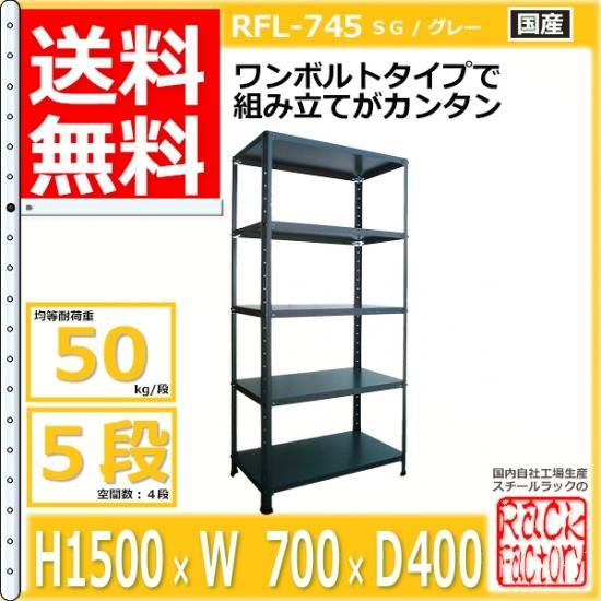 スチールラック 幅70cm RFL-745 50kg/段 H1500xW700xD400 5段 収納 ワンボルト ライトラック RFL-745