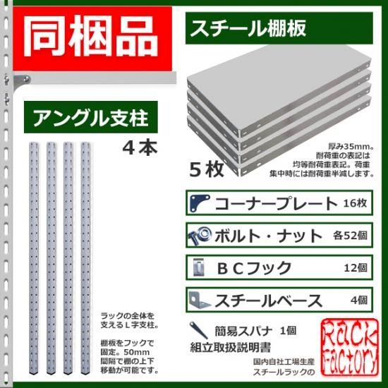 スチールラック 幅180×奥行45×高さ180cm 4段 ボルトレスラック 耐荷重200kg/段 単体用(支柱4本)