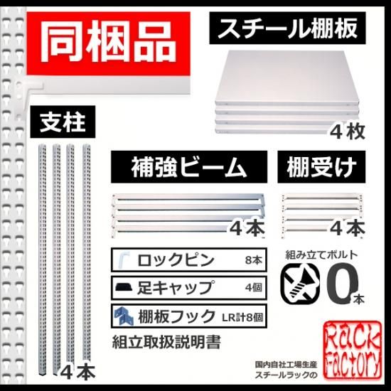 スチールラック 幅87×奥行30×高さ240cm 4段 ボルトレスラック 耐荷重150kg/段 単体用(支柱4本) RNB150-24083-4