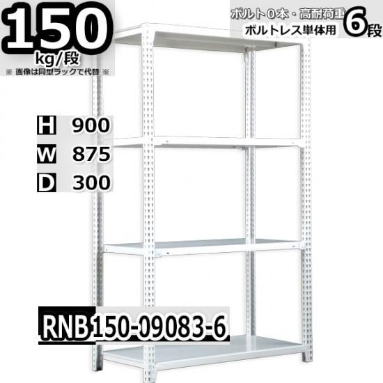 スチールラック 幅87×奥行30×高さ90cm 6段 ボルトレスラック 耐荷重150kg/段 単体用(支柱4本) RNB150-09083-6