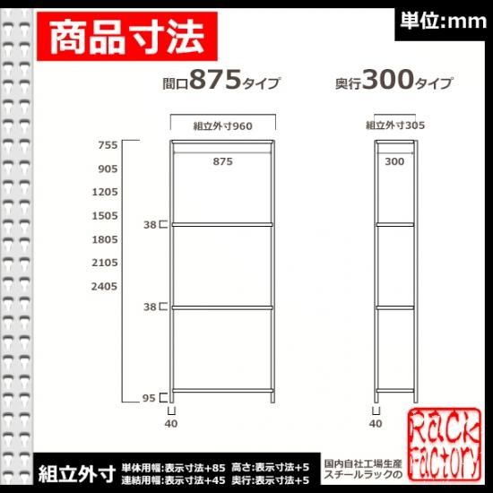 スチールラック 幅87×奥行30×高さ90cm 7段 ボルトレスラック 耐荷重300kg/段 単体用(支柱4本) RNB300-09083-7