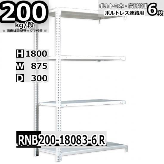 スチールラック 幅87×奥行30×高さ180cm 6段 ボルトレスラック 耐荷重200kg/段 連結用(支柱2本) RNB200-18083-6R