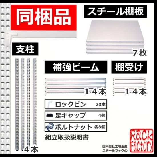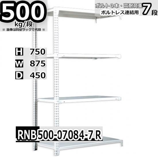 スチールラック 幅87×奥行45×高さ75cm 7段 ボルトレスラック 耐荷重500kg/段 連結用(支柱2本) RNB500-07084-7R